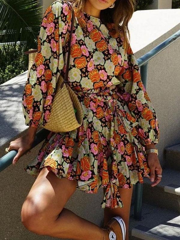 Long sleeve tie front dress