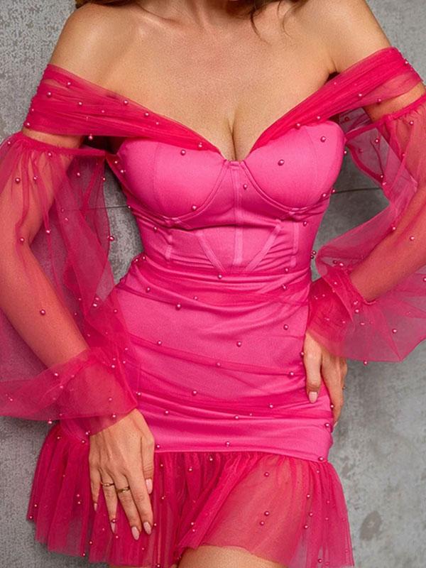 One shoulder mesh dress