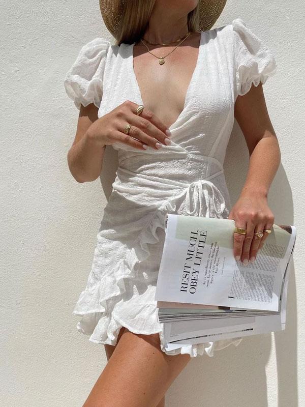 Puff sleeve ruffle dress