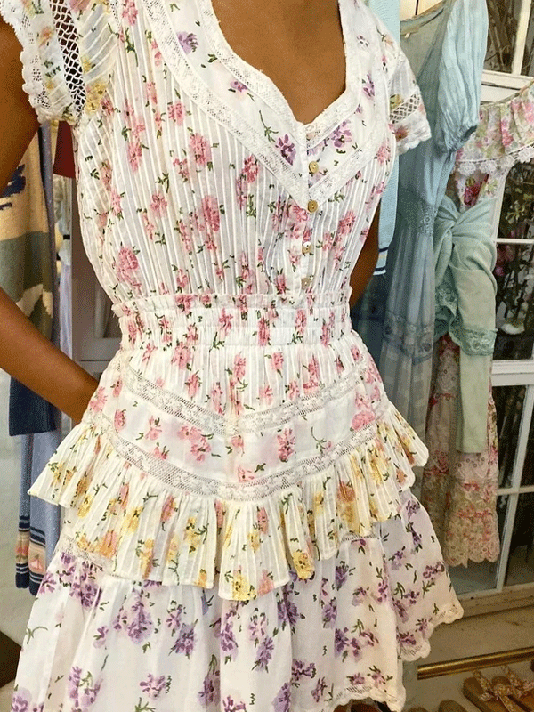 V neck floral mini dress